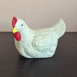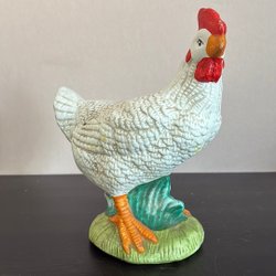 Denna charmiga keramikhöna är en dekorativ inredningsdetalj som passar perfekt för att förvara småsaker eller som en del av en lantlig inredning. Den är tillverkad av keramik och har en gul färg med röda detaljer.