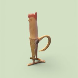 Charmig tupp i keramik. Den har blivit guldmålad någon gång.