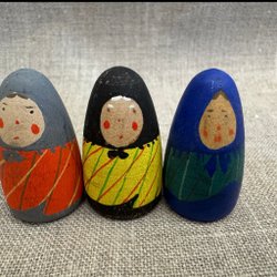 2 st påskkärringar. Huvud och skor av trä, kropp av tovad ull, kläder av tyg. Mått se foton.