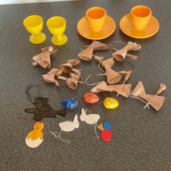 - Ett stort handgjort påskpynt, lite medtaget (se bild).