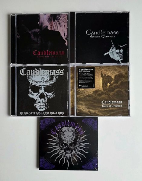 Samling af Candlemass CD'er bestående af: From the 13th Sun, Dactylis Glomerata, King of the Grey Islands, Tales of Creation og en anden CD.