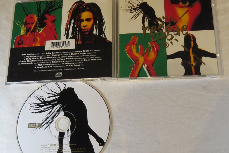 CD-skiva med Absolute Reggae 2, en samling med diverse artister som Bob Marley, Eddy Grant, Inner Circle, Shaggy, Shabba Ranks m.fl.