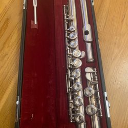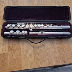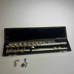 Tvärflöjt. Fungerar fint, lite sliten men okej skick allmänt. Massa av gamla tvärflöjts böcker ingår också. (Rengjord)