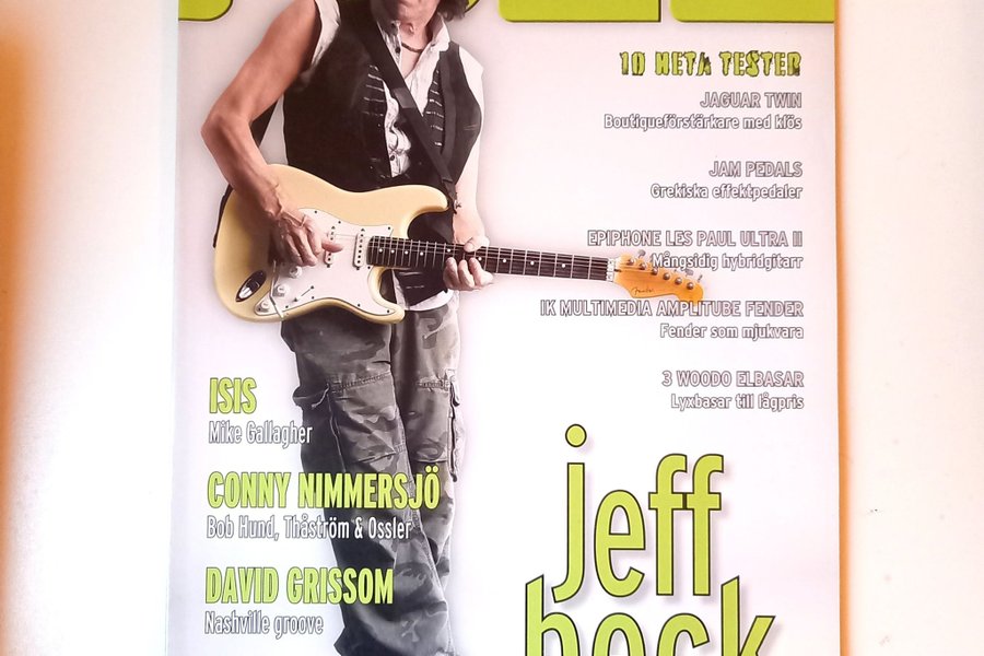 Tidning Fuzz med Jeff Beck på omslaget. Artiklar om Jaguar Twin, Jam Pedals, Epiphone Les Paul Ultra II, IK Multimedia Amplitube Fender och 3 Woodo Elbasar. Interpress 0605-05.