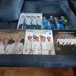 Alla våra skivor har en kvalitetsgaranti, att den går att spela som vanligt. Det omfattar inte skador på omslag som syns på bilden, eller knaster på skivor, då det är beroende på pressningen i sig. Hackar den däremot, så är det en garantifråga.