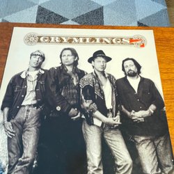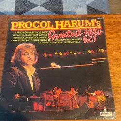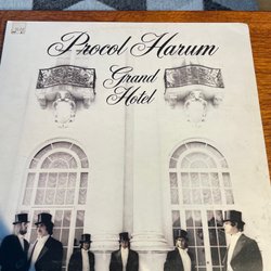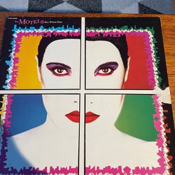 LP-skiva med Genesis - Invisible Touch. Inkluderar innerfodral med låttexter och ett svartvitt foto.