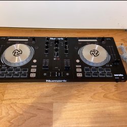 Numark Mixtrack Pro är en DJ-kontroller med två däck, designad för att ge omfattande kontroll över din musikmixning. Den har stora beröringskänsliga joghjul för scratching och cueing, samt en inbyggd mixersektion med crossfader och EQ-kontroller för varje kanal. Kontrollern inkluderar också prestandapads för att trigga samples och effekter, samt transportkontroller för uppspelning och cue-punkter. Mixtrack Pro är utrustad med ett ljudgränssnitt som möjliggör direkt anslutning till högtalare och hörlurar.en ratt fattas,se bild,ej provad(dödsbo) ej några pengar tillbaka om den skulle vara defekt