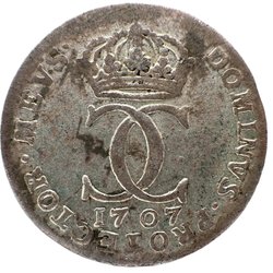Karl X Gustav - 1/4 Öre 1657 skarpt lejon med vis röd lyster