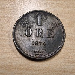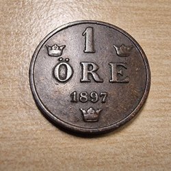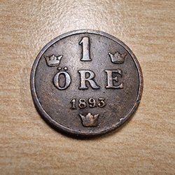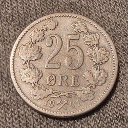 Ett äldre svenskt mynt från 1855 med valören 25 öre. Framsidan visar en krönt sköld omgiven av lagerblad, med texten "25 ÖRE" och årtalet "1855". Baksidan visar ett porträtt i profil med texten "OSCAR SVERIGES NORR. GOV. KONUNG".