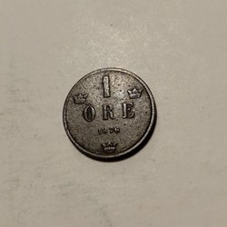 Ett 1 Öre från 1867. På framsidan står det "1 ÖRE" och årtalet 1857. På baksidan syns Carl XV Sveriges, Norr G. O. V. Konung.