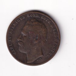 Svenskt mynt 2 öre 1865.