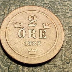 kopparmynt med valören 2 öre. Årtalet är 1883