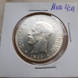 Gustav V 2 Krona 1940 Ändrad 4 oval 0. (1814)