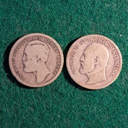 En 5 öring från 1913. Årtalssiffrorna 13 i jämnhöjd.