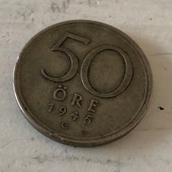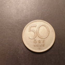 Svensk 50 Öre från 1945.