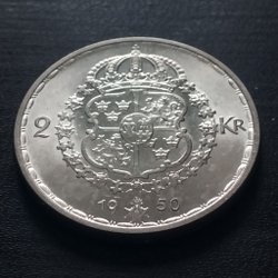 Svensk 2 krona från 1950. Valören är 2 kronor.