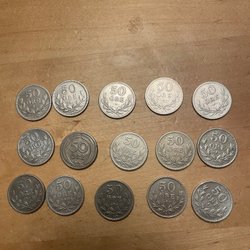 Samling av 50-öringar. Se bilder för detaljer.
