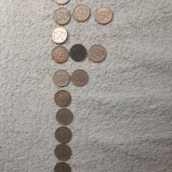 En samling av 50 öre mynt från olika årtal. Inkluderar årtalen 1924, 1940, 1946, 1947, 1948 och 1953.
