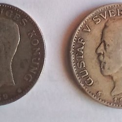 Silvermynt präglat 1939 med valören 1 kr. Gustaf V Sveriges Konung. Smutsig.