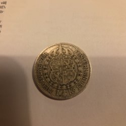 Silvermynt med Gustaf V Sveriges Konung. År 1950, 2 kr Silvervärde 150 kr.
