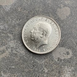 Ett minnesmynt präglat för att hedra Gustaf VI Adolf. Detta exemplar är från 1952.