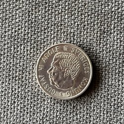 Ett svenskt 2 kronor från 1954 med Gustaf VI Adolf.