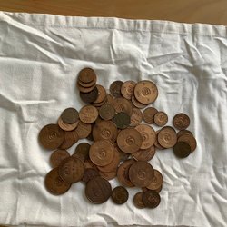 Samling av svenska kopparmynt i rör. Innehåller årgångarna 1939, 1961, 1962, 1963 och 1960.