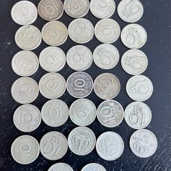 Parti med 7 svenska ören. Två 25 öre från 1976, två 10 öre från 1980, tre 10 öre från 1979.