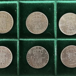 Ett samlarobjekt från Sverige. Föreställer Gustaf VI Adolf. Valören är 2 Kr.