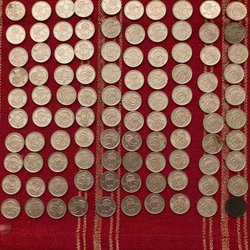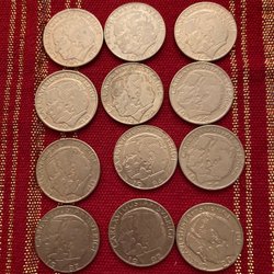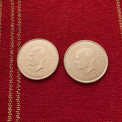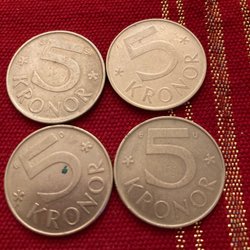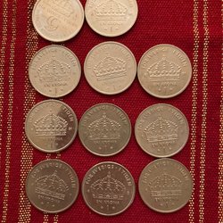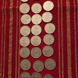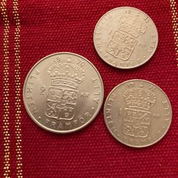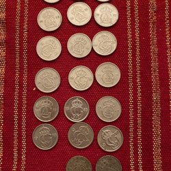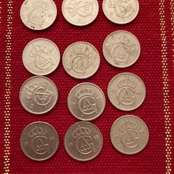 En samling av 25 öre från Sverige. Årtalen inkluderar 1970, 1973 och 1978.