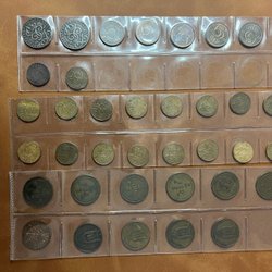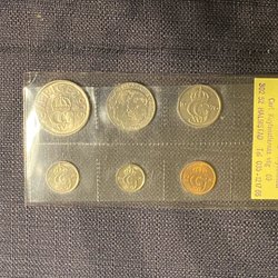Fyra stycken svenska mynt. 5 Öre 1946. 1947. 1948. 1949