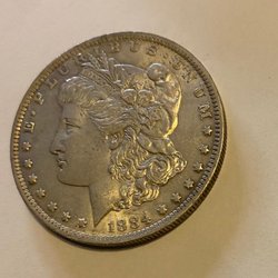 Denna amerikanska silverdollar från 1921 har ett värde av en dollar. Framsidan visar ett porträtt av Lady Liberty och baksidan visar en örn med utbredda vingar.