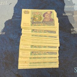 Sedel/mynt med kostnad över 1500:- Skr förvaras inte på SAGA-77s postadress utan förvaras inom bankväsendet.Köp av en sådan post har därför en dags längre leveranstid än normalt innan det skickas rekommenderat brev/paket till köpare.
