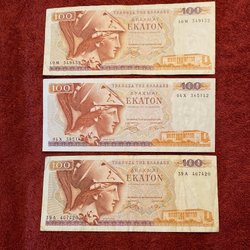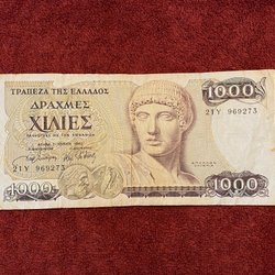 100 Drachmer 1955, 1000 Drachmer 1987. Mkt fina sedlar