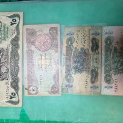 Den övre sedeln är från 1992 och har ett värde av fem dinarer. Serienumret är 0788003. Den nedre sedeln är från 1984 och har ett värde av en dinar. Serienumret är 0152039.