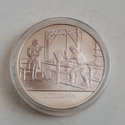 En medalj med en friidrottare som håller en krans. På baksidan av medaljen står gott humör. Både ålder och ursprung av medaljen är okänt. Mått:3cm i diameter