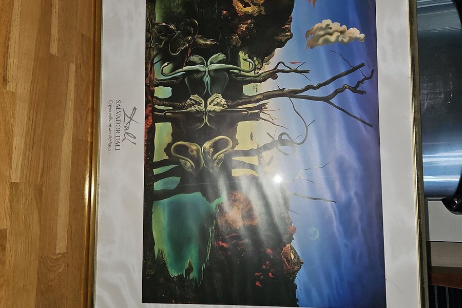 Affisch av Salvador Dali. Konstmotiv med svanar och elefanter.