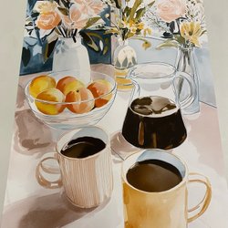 Poster med motiv av en kopp bryggkaffe.