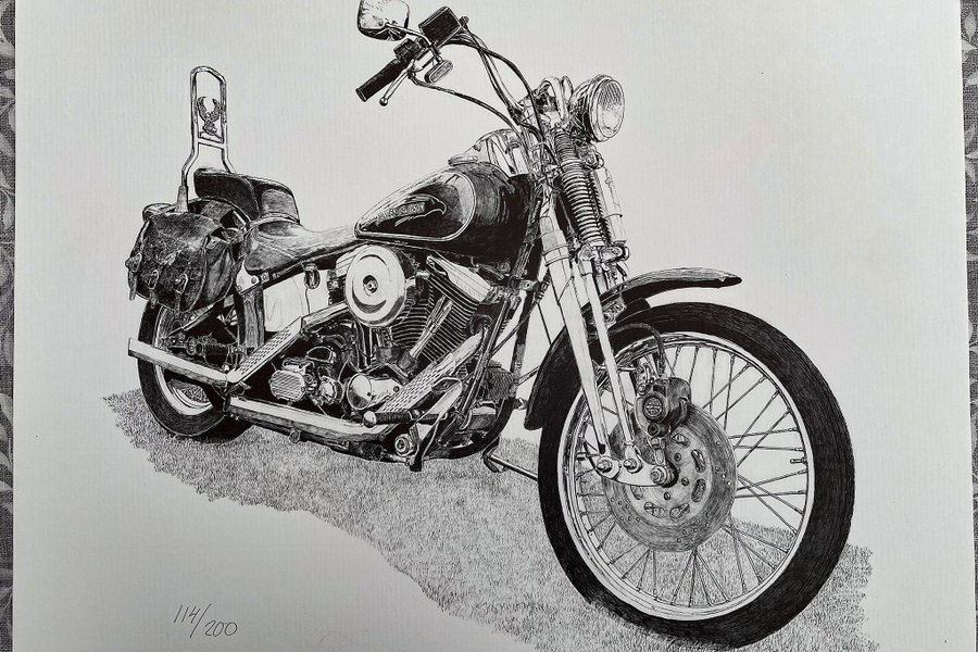 Harley-Davidson motorcykel. Original litografi upplaga 200 ex. Storlek 46x43cm. Konstnär Jan Hultman
