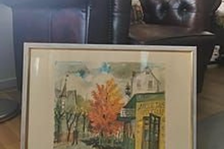 Tavla i mysig stadsmiljö i finaste höstprakt av OLLE OLSSON HAGALUND (print).