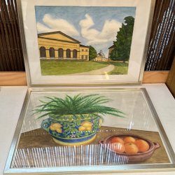 Fyra akvareller med olika motiv. Signerade av konstnären men verkar vara tryckta och inte målade