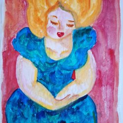 Färgglad målning med ett ansikte i mitten.
