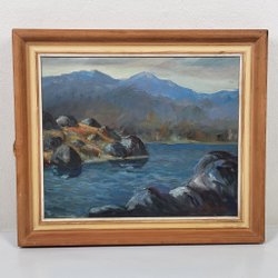 Göte - Landskapsmotiv - Oljemålning på duk - Oidentifierad signatur - Tavla
