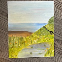 En vacker målning med motiv av ett hus vid vattnet. Signerad E. Mellbrand 1958.Olja på duk 65x80