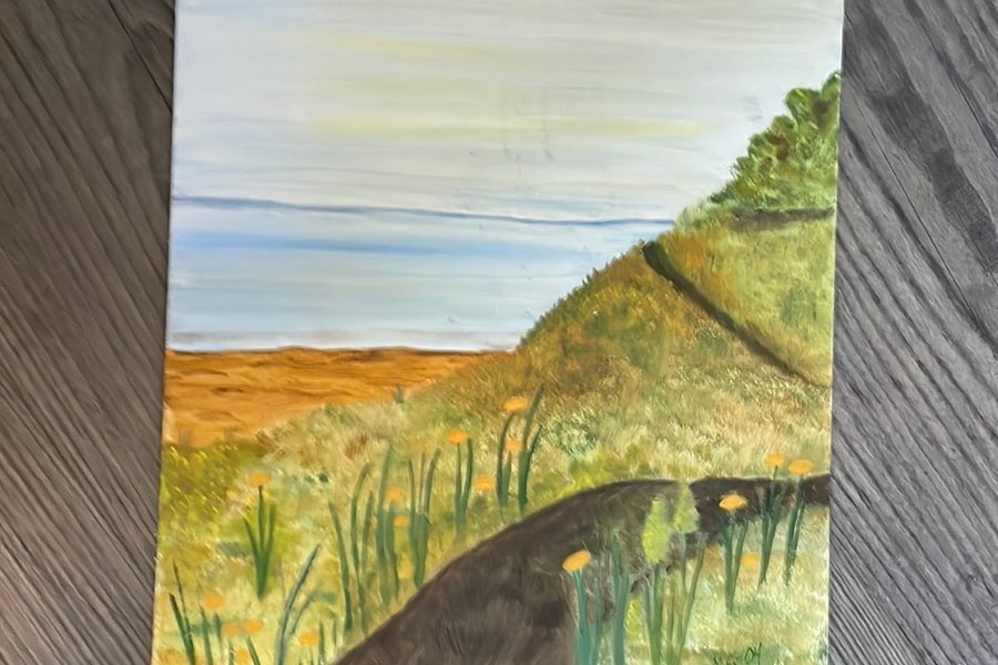 En målad tavla med landskapsmotiv. Den är målad på en Pannå 61 F3 för olje-, tempera- och akrylfärger från Dekorima. 22x27 cm