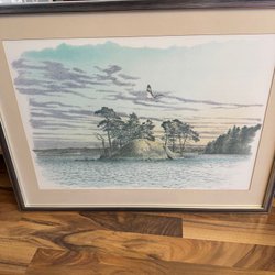 Tavla med motiv av en kustlinje med klippor och hav. Konstnären Joaquin Mir är angiven på en plakett på tavlans framsida och på baksidan finns en etikett från Polysmalt som anger "JOAQUIN MIR" och "Costa Brava". Tavlan är tillverkad i Spanien.