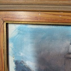 Målning med en figur med blont hår. Målningen har en mörkgrön bakgrund och grön förgrund.