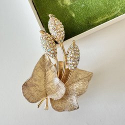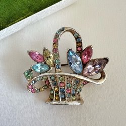 Vintage brosch, guldpläterad mesh turkos glas virveldroppe dingelbrosch nål