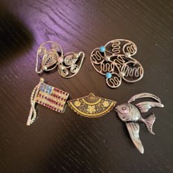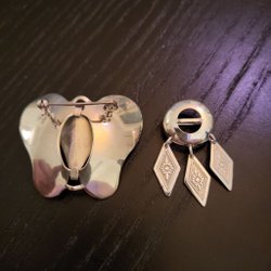 Två broscher med djur motiv. Fågel och Rådjur.