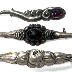 Broscher förknippas ofta med ädelstenar, guld och silver. Trenderna genom årtiondena har dock även lämnat plats för retrobroscher och färgglada plastvarianter. Broscher finns i ett närmast oändligt antal olika varianter, både trendiga och klassiska. I Traderas utbud av begagnade broscher kan man hitta broscher silver och broscher guld. I allra bästa fall finns en Chanel brosch eller två ute för auktion – en dröm för den som gillar att klä sig klassiskt stilrent. Den som vågar ta ut svängarna har ofta ännu mer att hämta. Broscher, smycken och kläder är ett intresse som delas av många. Individuella preferenser styr garderobens innehåll och dessa förändras över tid. Titta igenom utbudet av aktiva annonser så kan du upptäcka broscher som gjort sitt i en persons smyckesgarderob, men som blir huvudnumret i din. Hos Tradera har du möjlighet att hitta begagnade broscher i alla prisklasser, från slutsålda varianter från budgetkedjorna till diamantprydda varianter från välkända juvelerare.